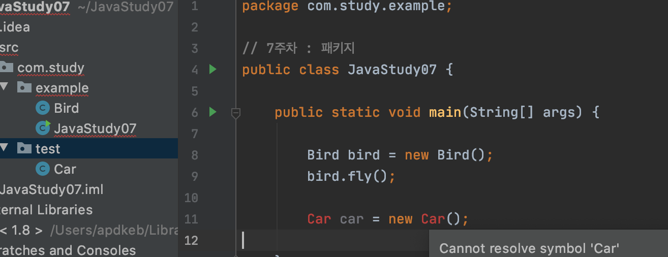 같은 패키지에 없는 클래스라면 에러가 발생한다