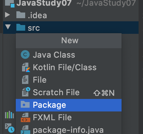 생성 후 해당 패키지 내에서 클래스를 만들면 끝난다