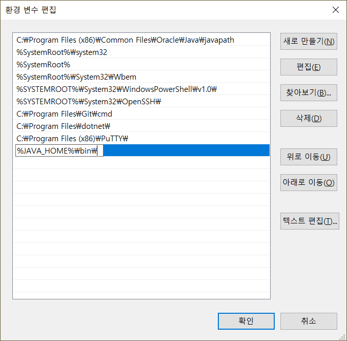 윈도우 경우 시스템 설정의 환경변수로 추가한다
