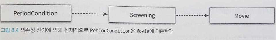 - 직접 의존성 : 한 요소가 다른 요소에 직접 의존하는 경우, PeriodCondition이 Screening에 직접 의존하여 코드에 명시적으로 드러난다.