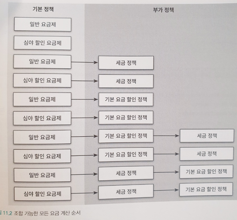 핸드폰 과금 시스템의 정책이 기본 정책과 부가 정책이 있고 그 안에 세부 정책이 있다고 생각해보자.