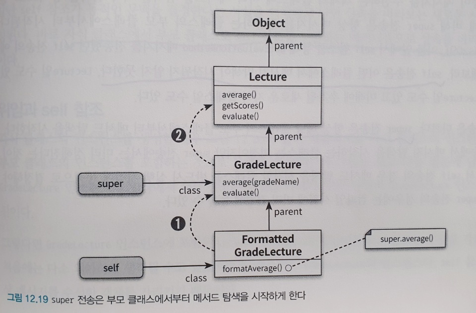 마치 부모 클래스에게 메시지를 전송하는 것처럼 보여 super 전송이라 부르기도 한다.