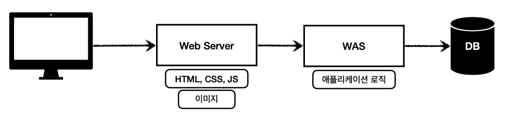 - WAS, DB 만으로 시스템 구성 가능. (WAS가 정적 리소스, 애플리케이션 로직 모두 제공이 가능하기 때문)