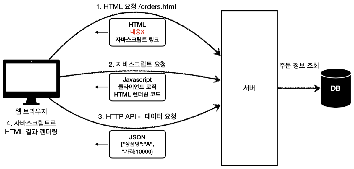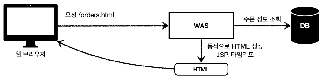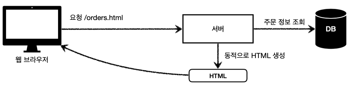 - HTML 최종 결과를 서버에서 만들어 브라우저에 전달
