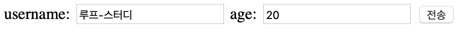 username: <input type="text" name="username" /> age: <input type="text" name="age" /> <button type="submit">전송</button>