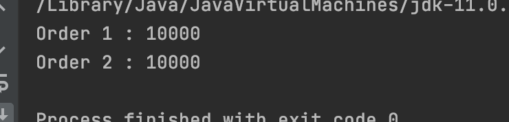 곧바로 order2 는 count 필드값 10000 으로 변경한다. 일시정지가 끝난 order1 실행이 되면?