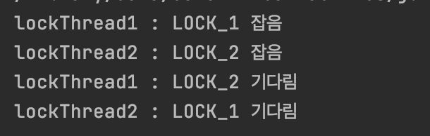 System.out.println("lockThread2 : LOCK_1 기다림 ");