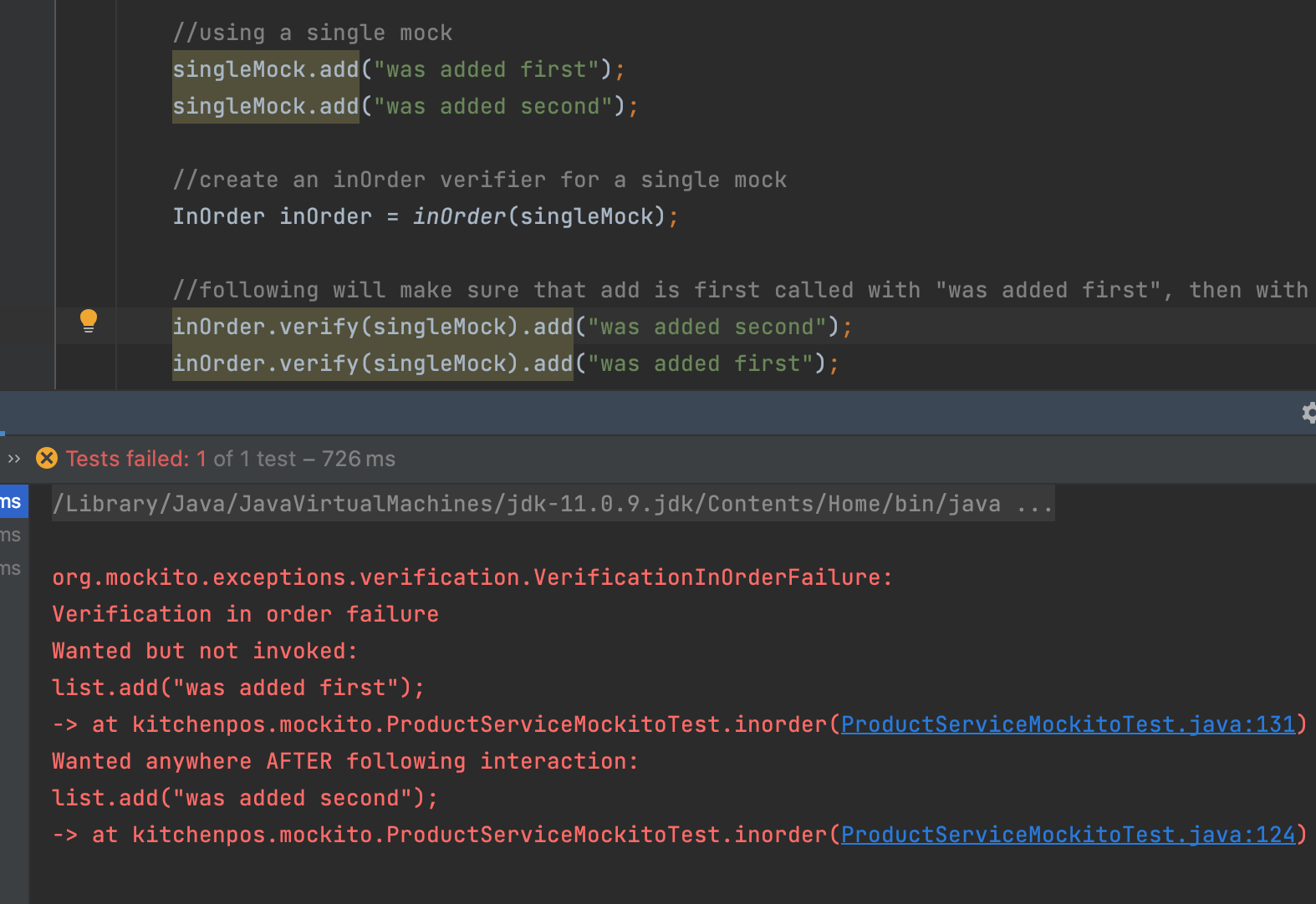 2개 이상의 Mock 객체의 순서를 확인할 경우 다음과 같이 사용한다.