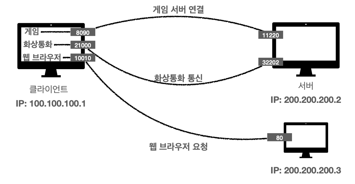 IP만으로 구분하기 힘들기 때문에 출발지 PORT, 목적지 PORT가 존재한다.