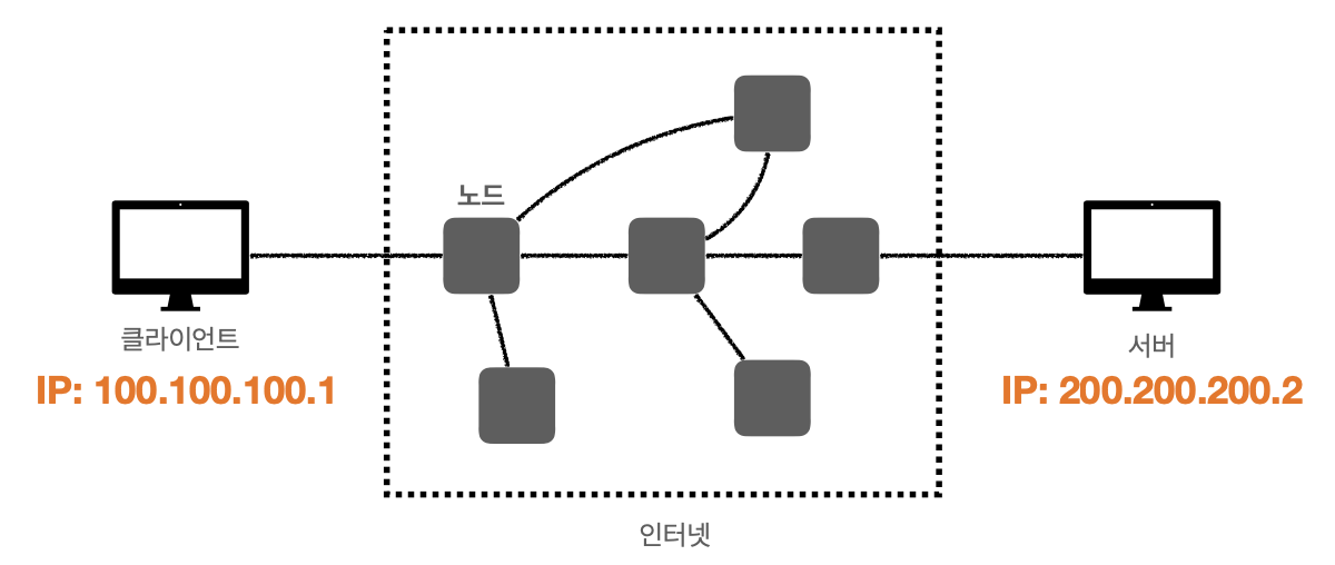 위의 그림을 보면 통신을 하는 과정에서 많은 노드를 거치게 되는데, 클라이언트와 서버가 서로 연결 안된걸 볼 수 있다.