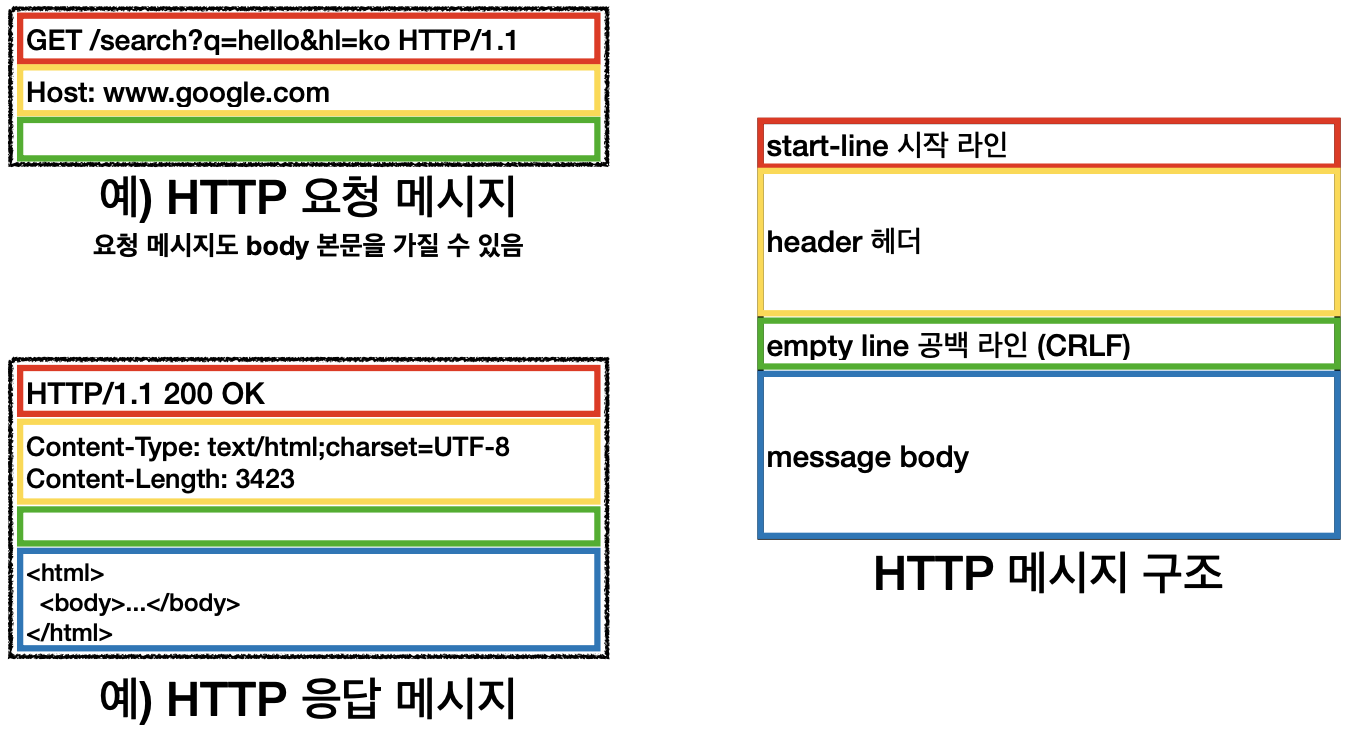 - HTTP 메시지도 매우 단순 -> 시작, 머리, 몸...