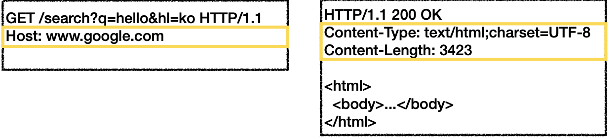 - header-field = field-name ":" OWS field-value OWS (OWS:띄어쓰기 허용)