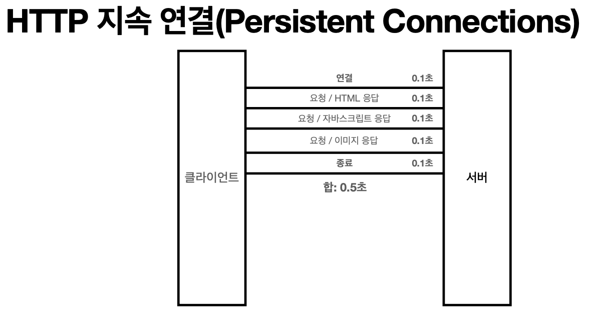 - 지금은 HTTP 지속 연결(Persistent Connections)로 문제 해결