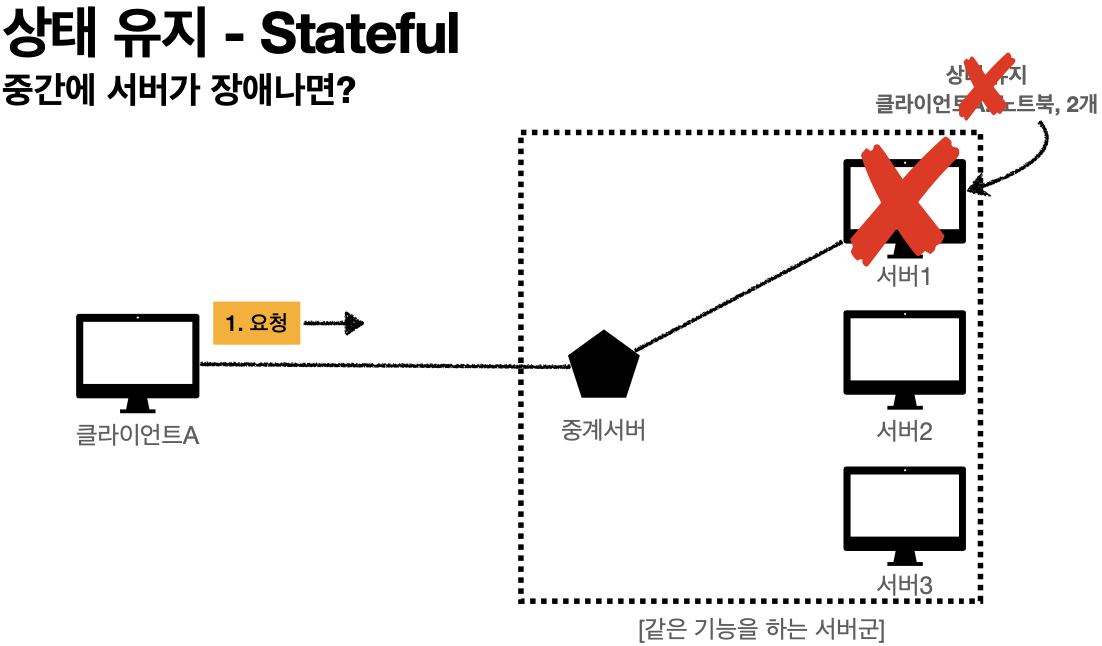 ex) 로그인 없이 검색만 할 경우, 유지되는 정보가 없으니 검색 서버에 트래픽이 많이 몰려도 검색 서버만 편하게 늘리 수 있다.