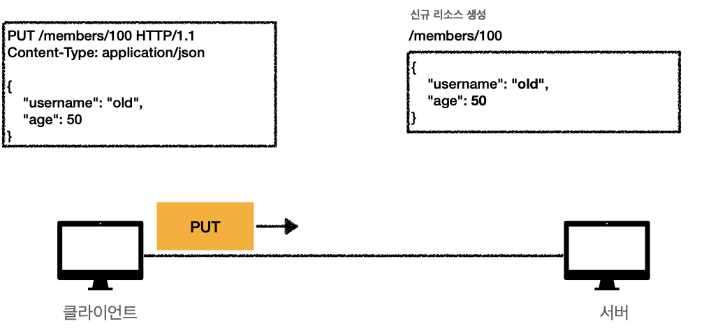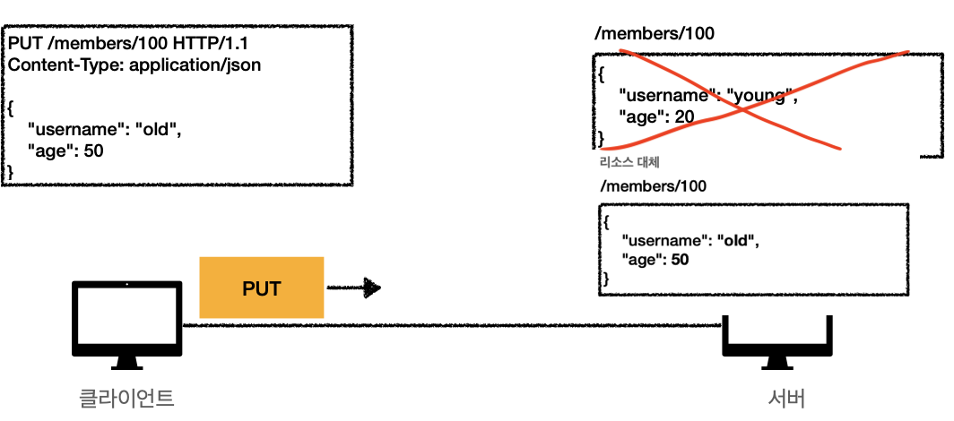 - PUT : 리소스를 대체, 해당 리소스가 없으면 생성