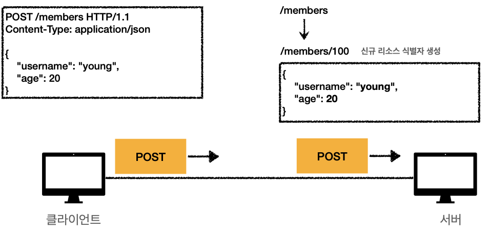 - 스펙 : POST 메서드는 대상 리소스가 리소스의 고유 한 의미 체계에 따라 요청에 포함 된 표현을 처리하도록 요청.