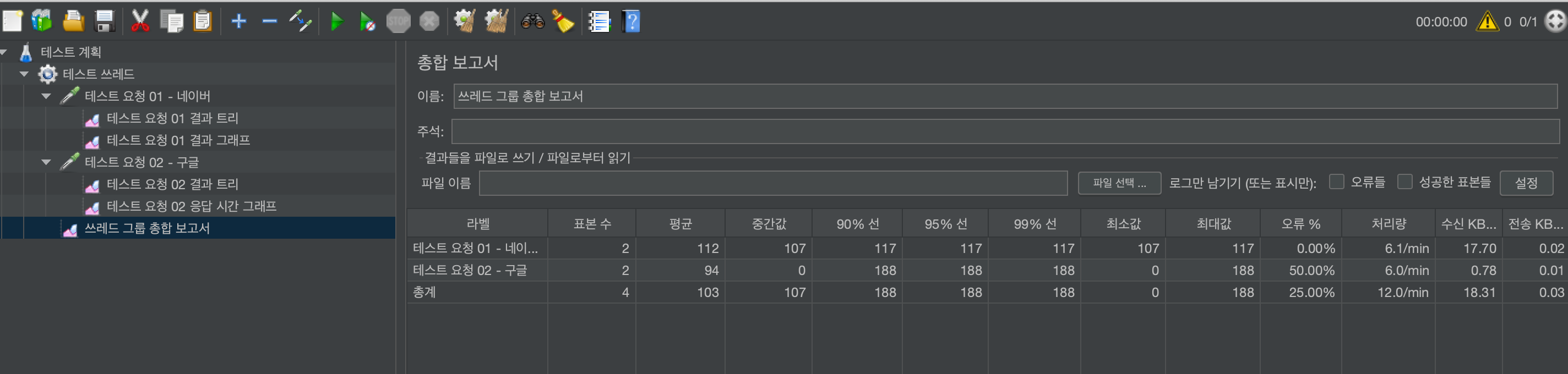 쓰레드 그룹 -> 리스너에는 실행되는 결과에 대한 분석지표들이 존재한다. 쓰레드 그룹내에서 실행될 쓰레드에 대한 모든 결과를 볼 수 있다.