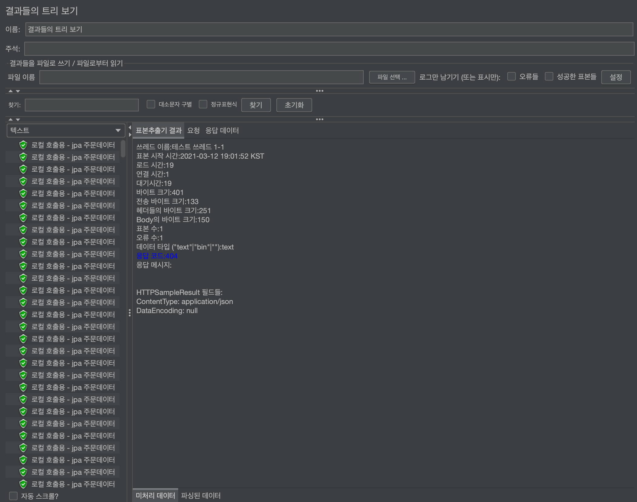 가장 작은 리스너에는 해당 쓰레드의 결과가 나타난다. 요청으론 실행된 주소가 나타나고 응답 데이터는 호출된 결과를 반환한다