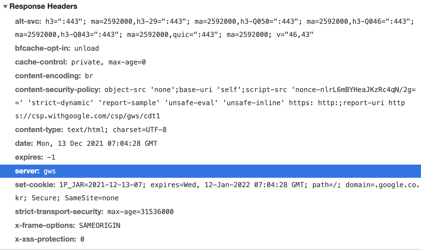 Server, 요청을 처리하는 ORIGIN 서버의 소프트웨어 정보