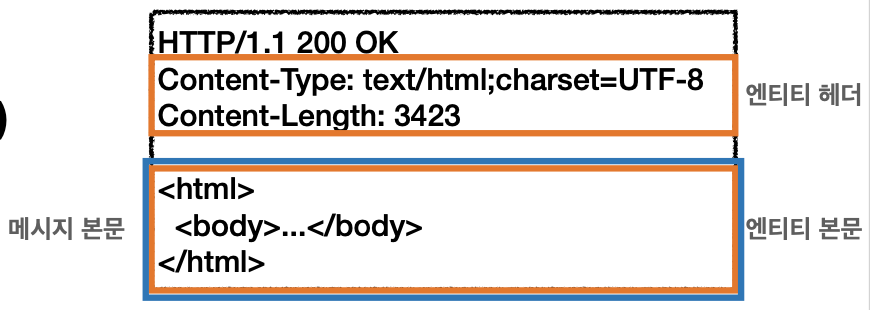 - 메시지 본문(message body)은 엔티티 본문(entity body)을 전달하는 데 사용함.