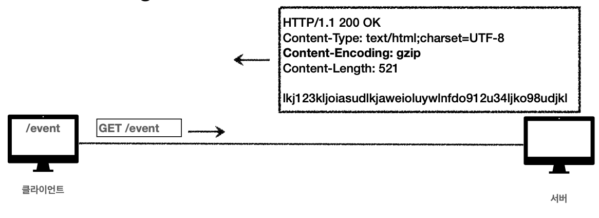 - 데이터를 전달하는 곳에서 압축 후 인코딩 헤더 추가