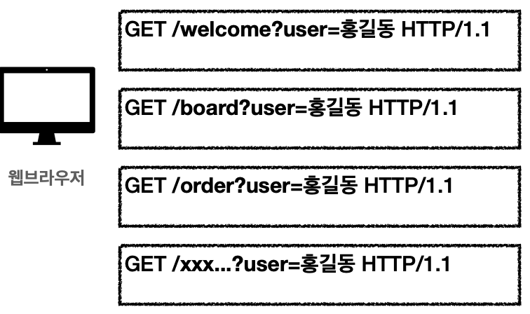 - 모든 요청에 사용자 정보가 포함되도록 개발자가 고생해야 한다.