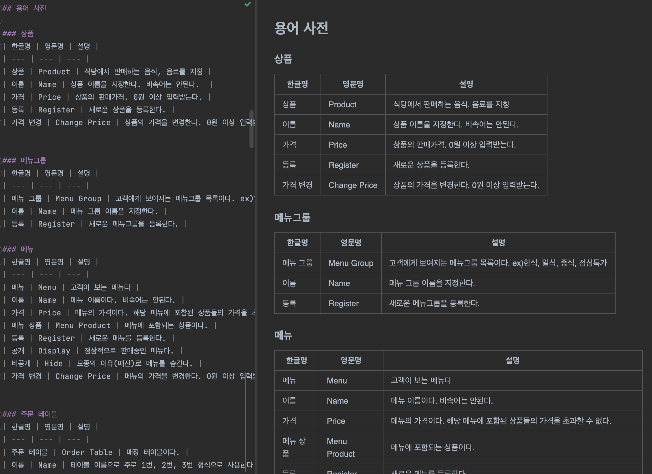 사업자도 이해할 수 있는 용어로 소통하고 코드로 구현해야한다.