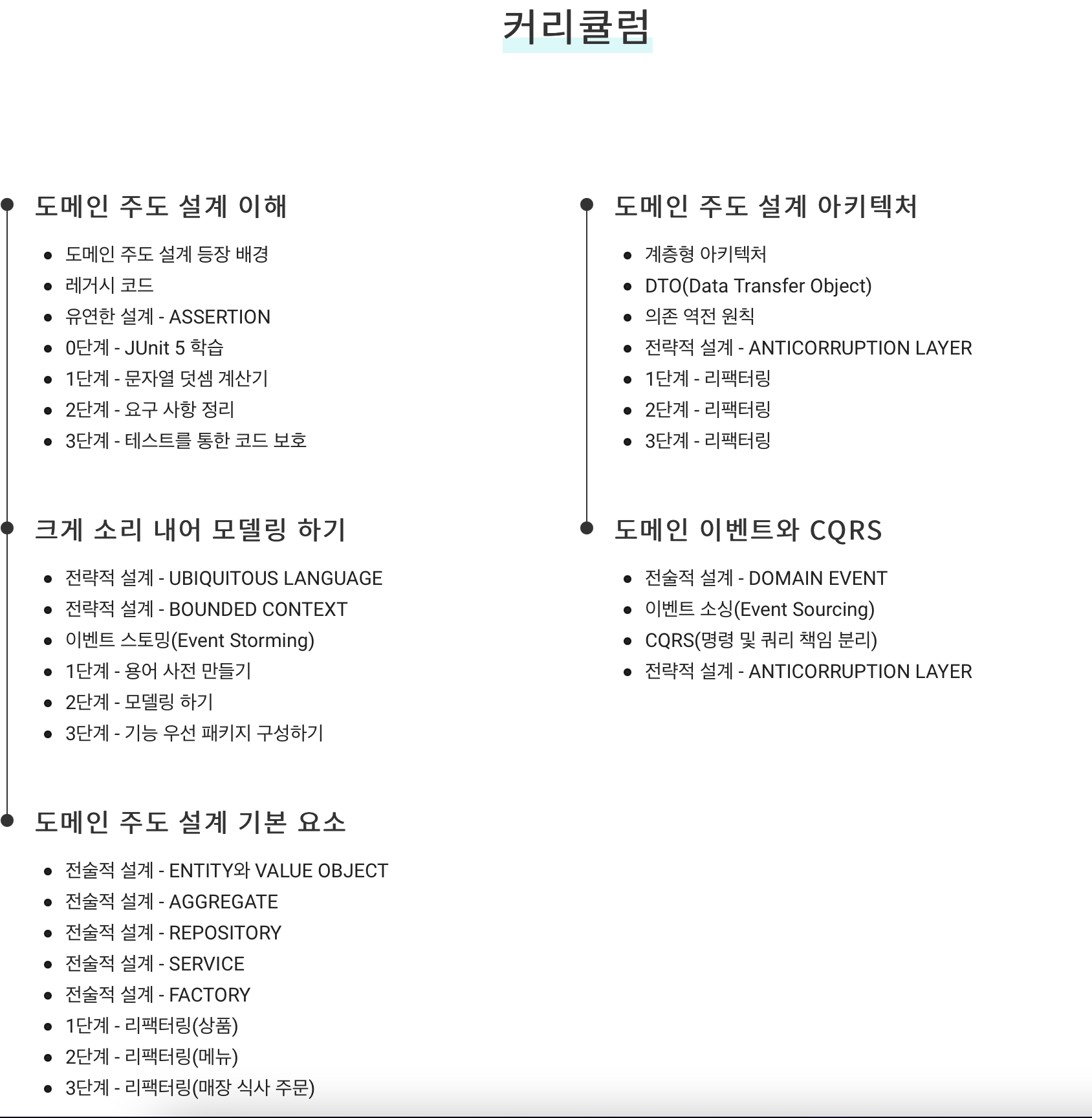 DDD 세레나데에서 제공하는 강의 특징과 커리큘럼이다.