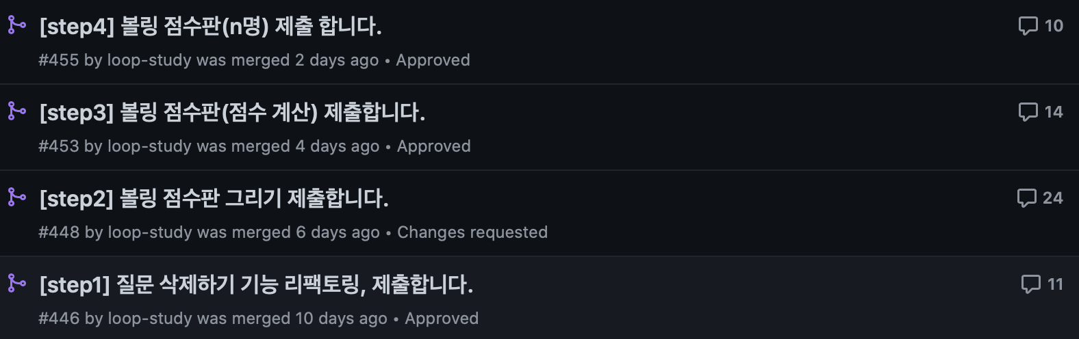 모두 수정하고 재요청한 뒤 통과하게 되었다.