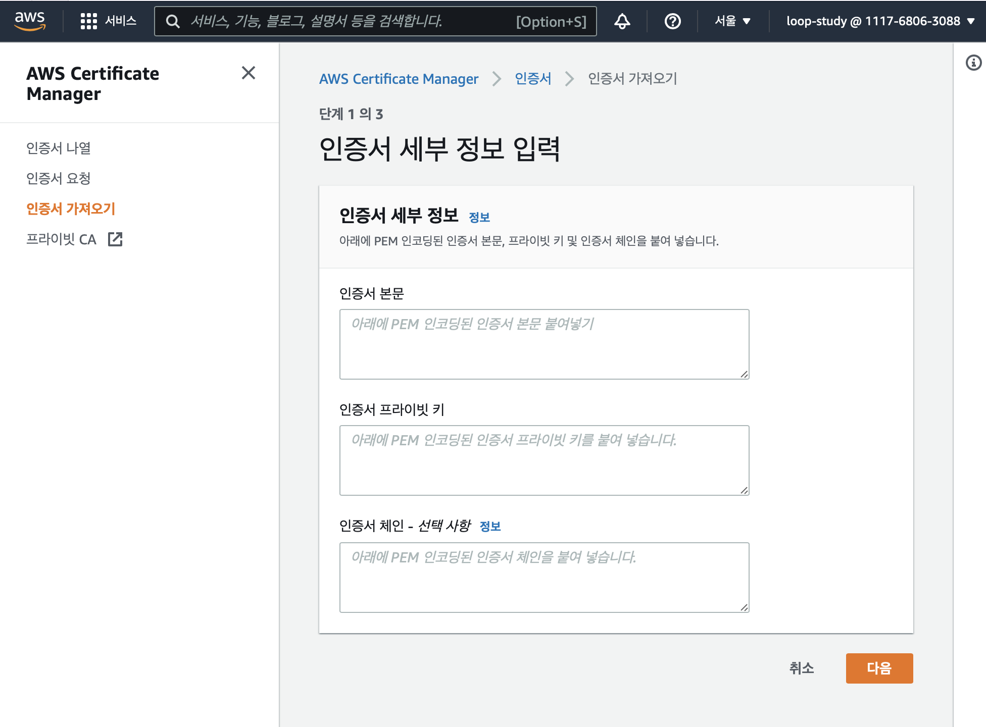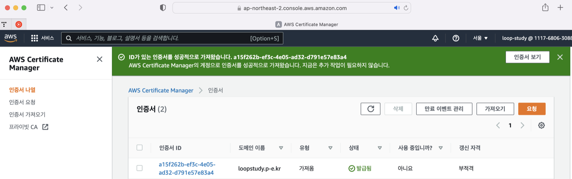 새로운 도메인을 생성하면서 인증서도 처음부터 진행했다.