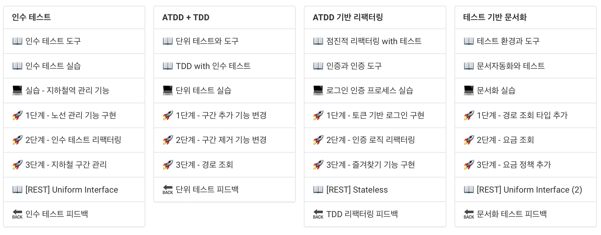 글을 작성하는 시점에서는 과정명이 ATDD, 클린 코드 with Spring으로 변경되었다.