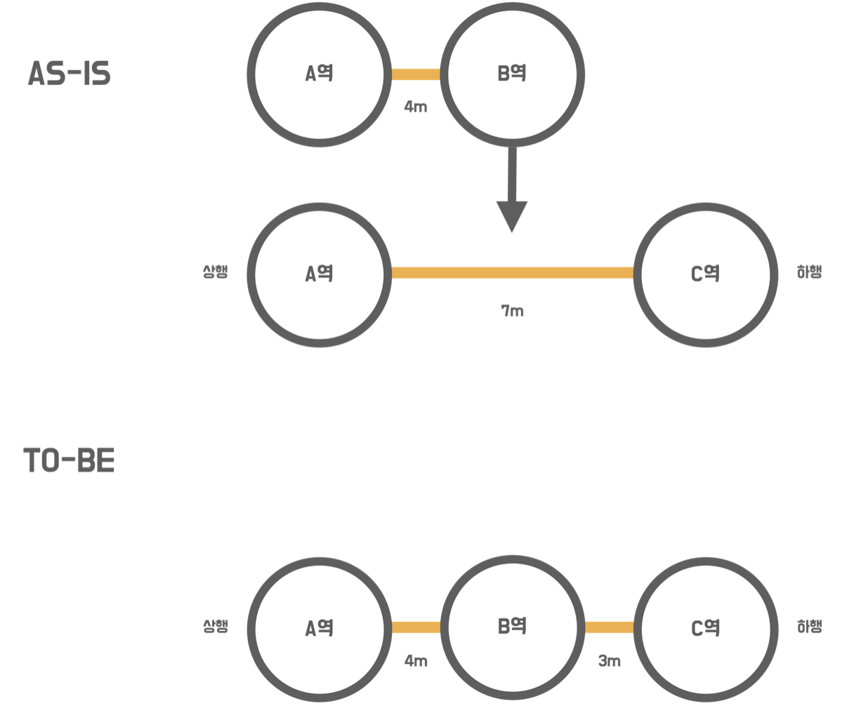 노선 중간에 추가하거나 맨 앞에 추가하거나 단순히 추가만 하는 게 아니라 변경에 따라 구간 길이도 같이 변경해야한다.