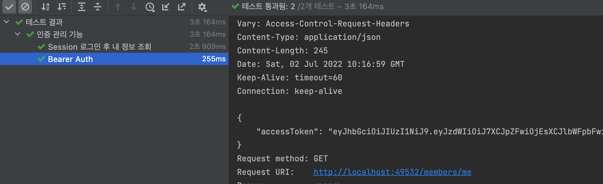 - AuthAcceptanceTest의 myInfoWithBearerAuth 테스트 메서드를 성공시키기