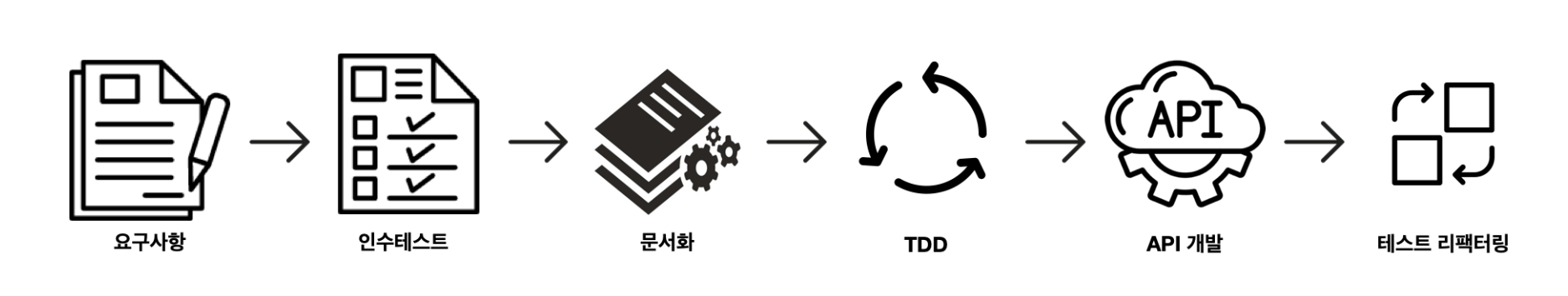 - 3. 요구사항 -> 인수 테스트 -> 문서화 -> TDD -> API 개발 -> 테스트 리팩토링