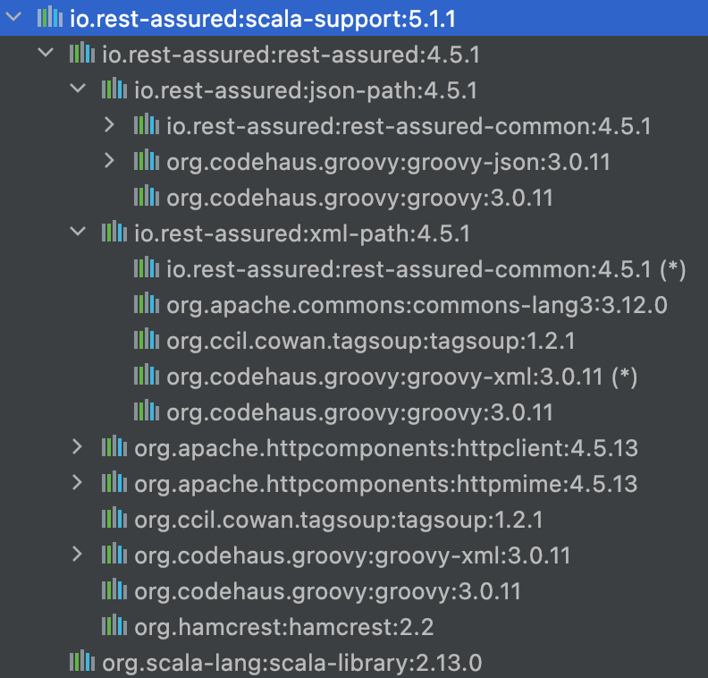 정상적으로 추가가 되었으면 io.rest-assured를 확인할 수 있다.
