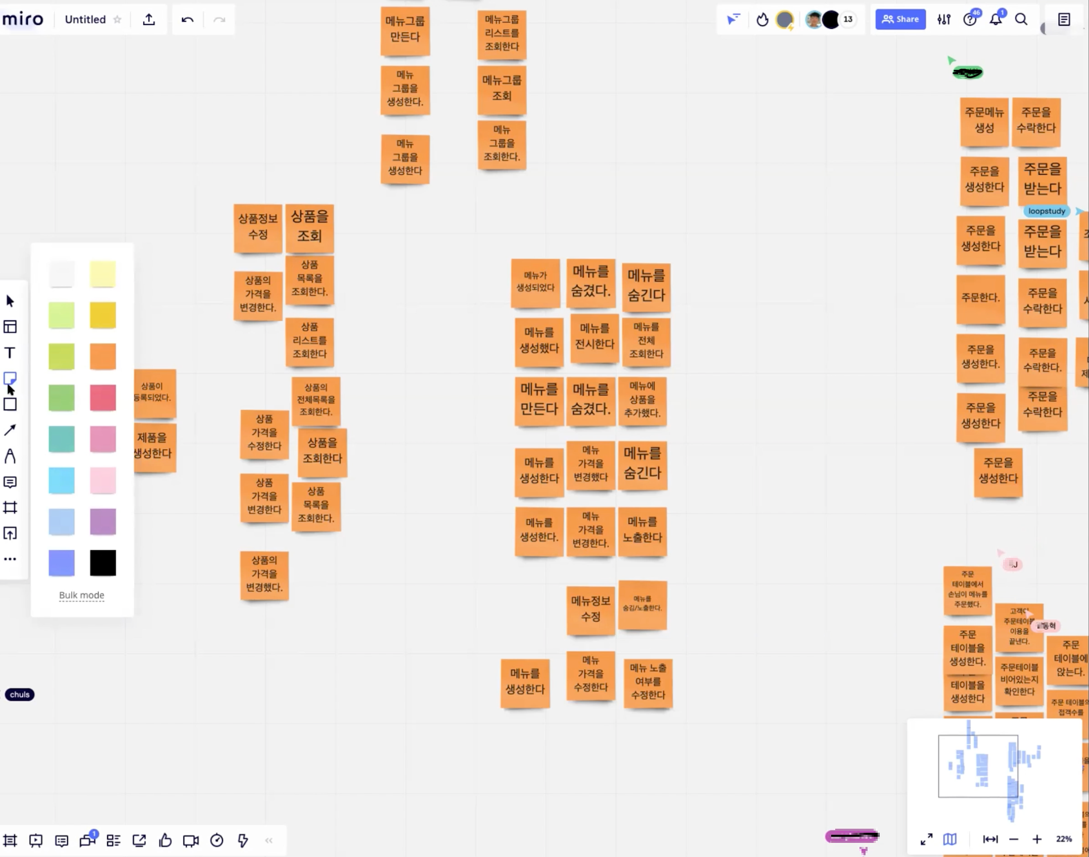 - 포스트잇마다 비즈니스 프로세스를 단계별로 적는다.