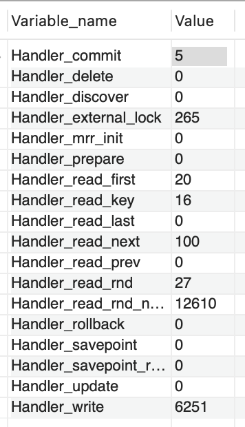 SHOW GLOBAL STATUS LIKE 'Handler%'