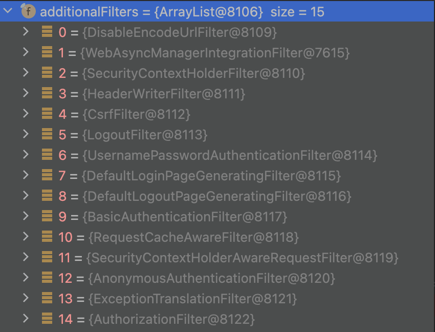 여기서 필터가 0번부터 마지막까지 순서대로 수행된다.