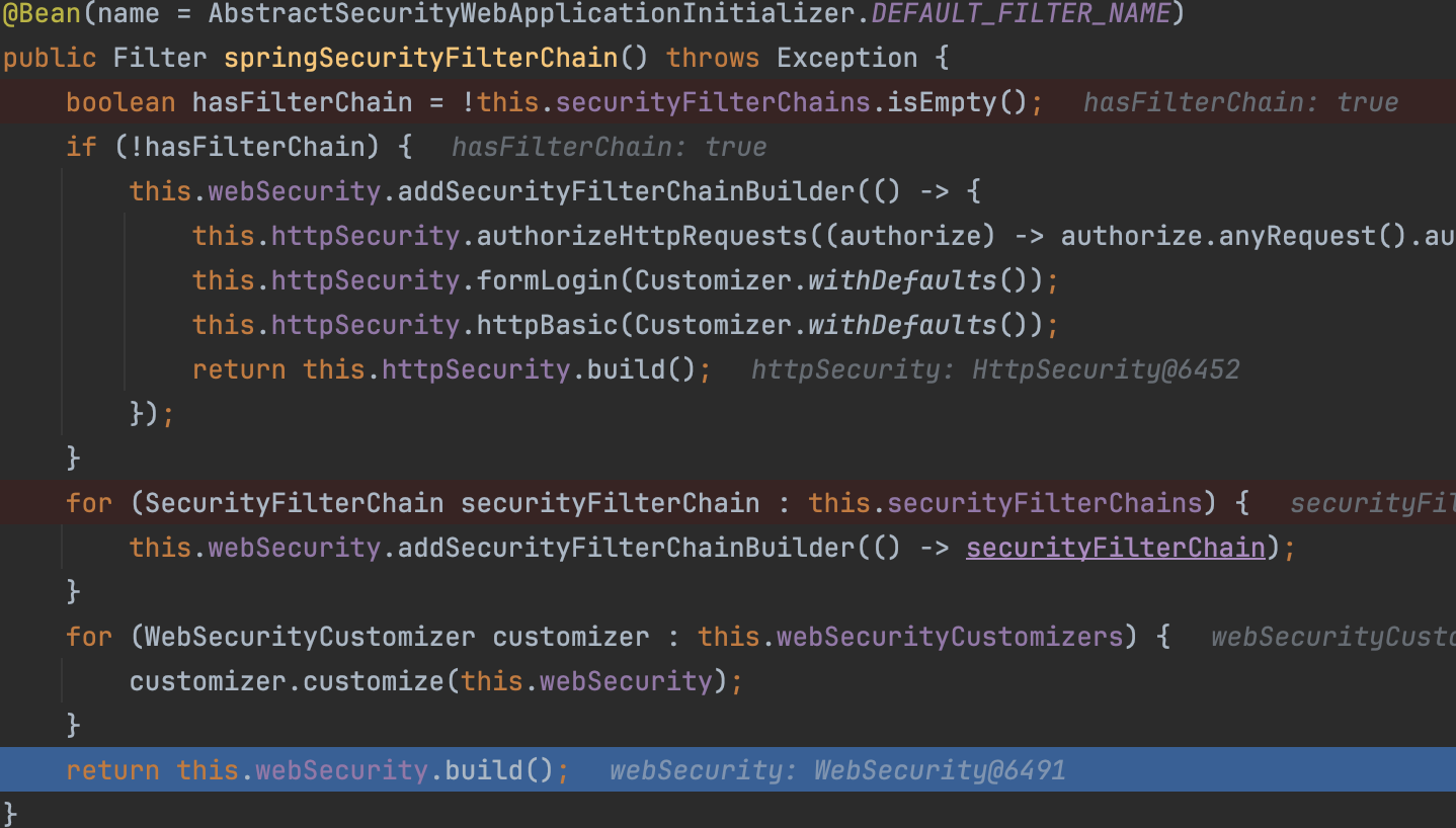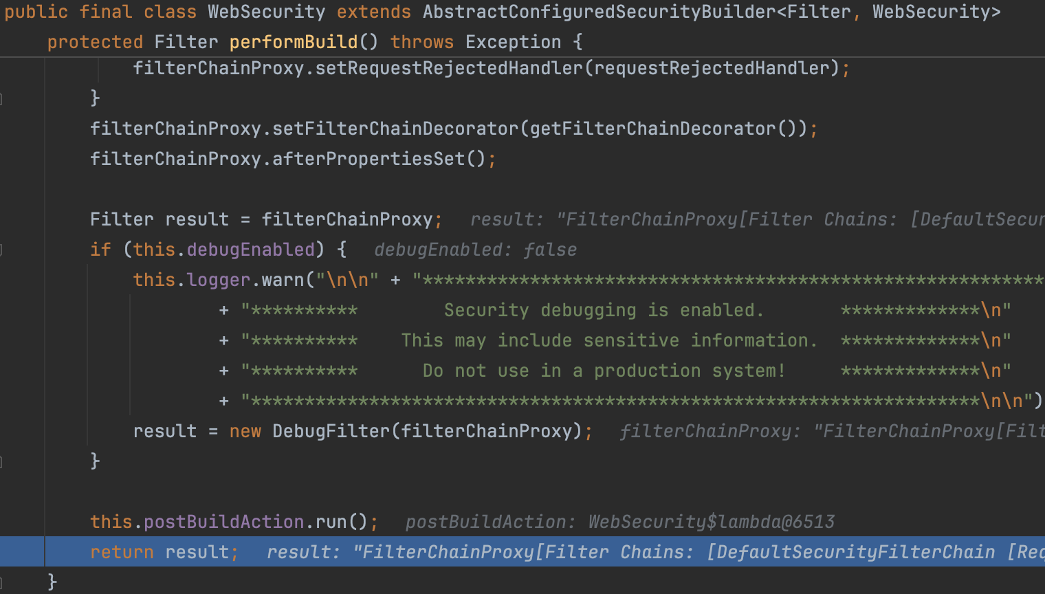 for (SecurityConfigurer<Filter, WebSecurity> webSecurityConfigurer : webSecurityConfigurers) {