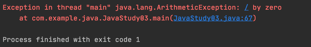 System.out.println("a / 0 = " + (a / 0)); // 에러 발생