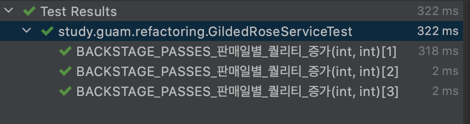 테스트 코드는 Gilded Rose 의 리팩토링 과제로 진행했다