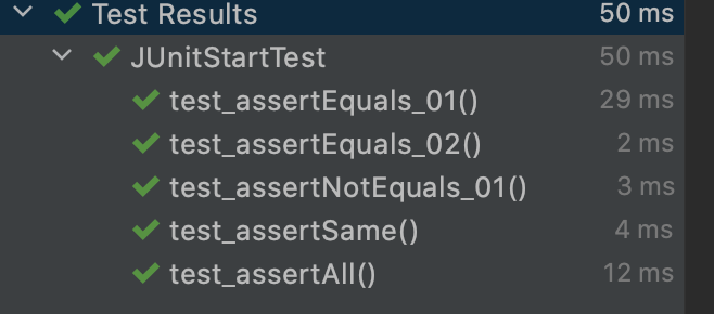 | assertNotEquals(A, B) | A와 B가 서로 다른 값인지 확인 |