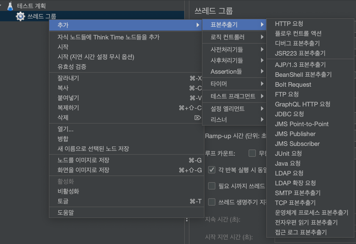 테스트 계획(test plan) 은 최상위 디렉토리를 나타낸다. 우측 클릭하면 다음과 같이 나온다.