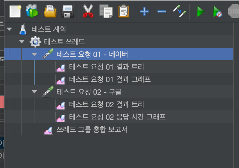쓰레드 그룹 -> 리스너에는 실행되는 결과에 대한 분석지표들이 존재한다. 쓰레드 그룹내에서 실행될 쓰레드에 대한 모든 결과를 볼 수 있다.